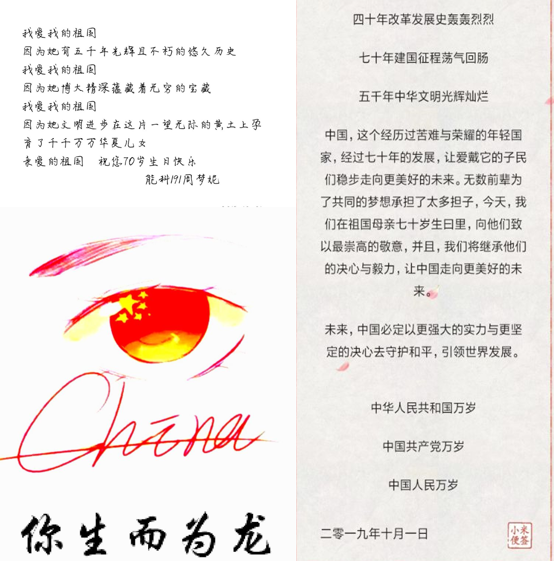 同学们的民族自豪感,同时也为广大同学提供了一个寄语祖国的平台,培养了同学们思想热情的积极性。